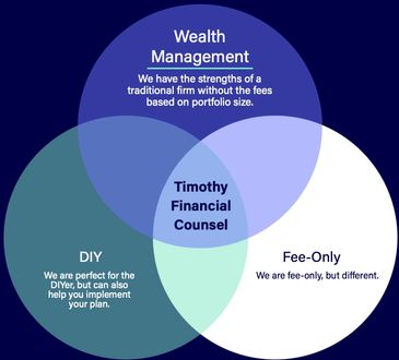 Timothy Financial Counsel has always been a fee-only fiduciary financial planning firm. Like other fee-only firms, we don’t receive commissions based on our recommendations. Unlike other fee-only firms, our fees are not tied to the size of your investment portfolio. We simply charge for our time by the hour. You only pay for the time you